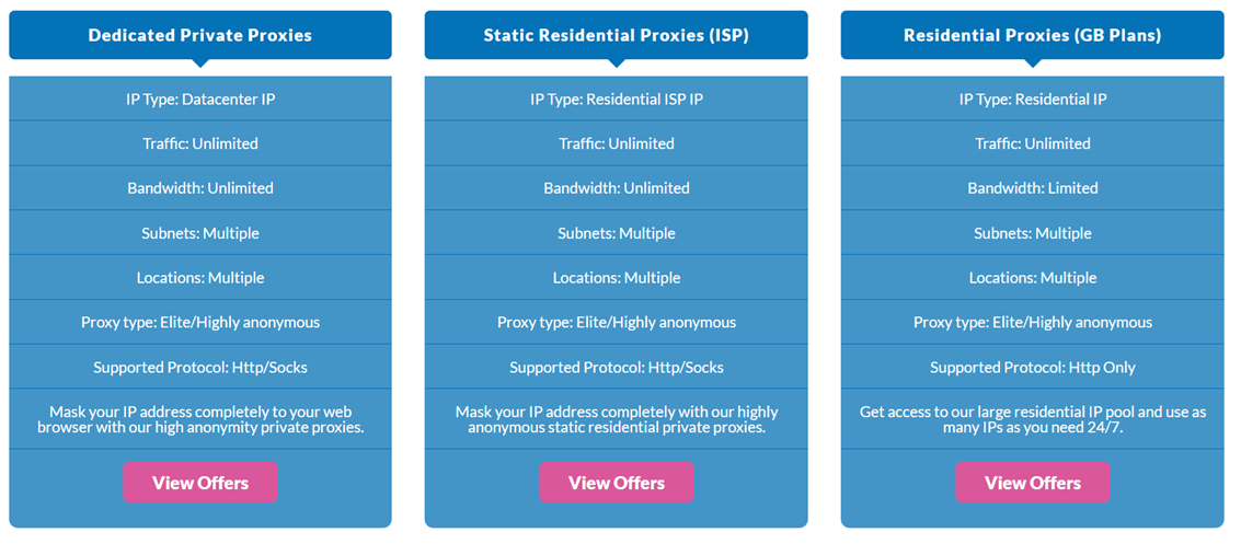 Understand your proxy usage needs before buying. You may not need the most expensive package. Use our website to find deals on mid-tier packages that suit your exact requirements.