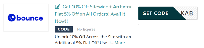 2. Combine Offers: Sometimes, you can combine a coupon code with existing discounts on the Bounce platform for even greater savings.