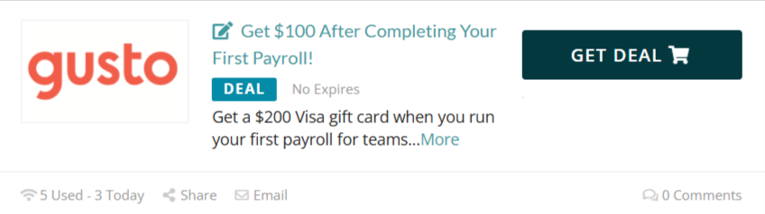 A: Right here—our site features updated and verified Gusto offers regularly.