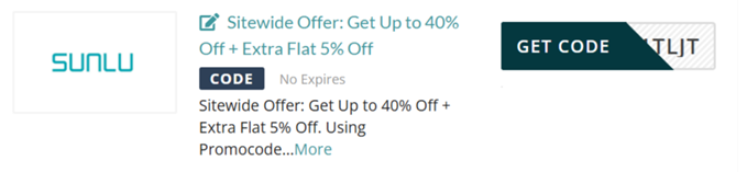– If it’s a direct discount link (like “Get Deal”), clicking on it will redirect you to Sunlu’s website with the discount already applied.